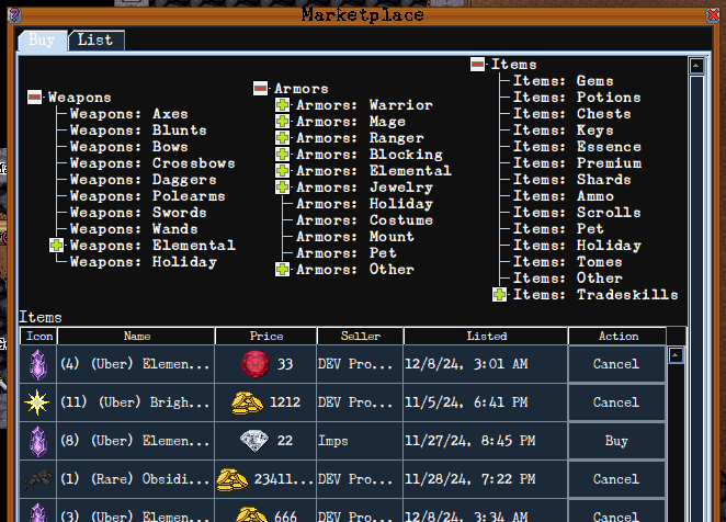 - List your weapons, armors, and items on the Kisnard Online Marketplace